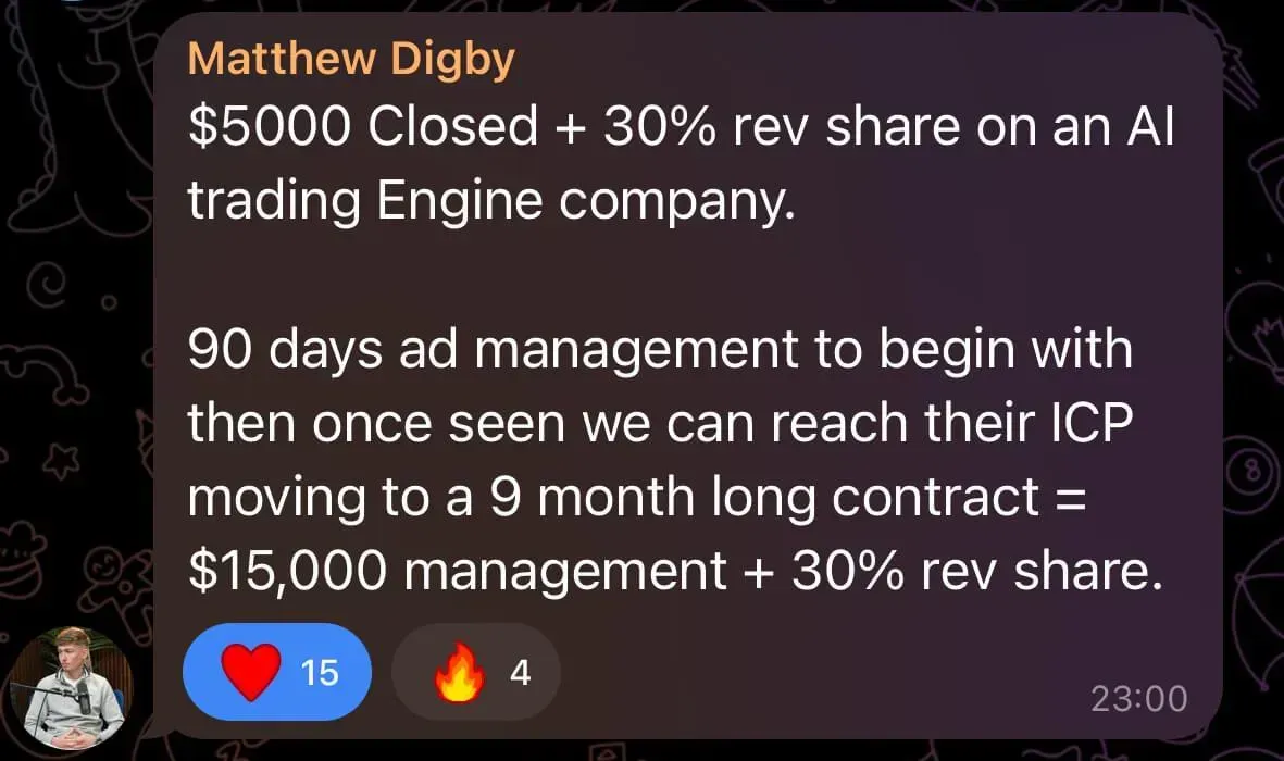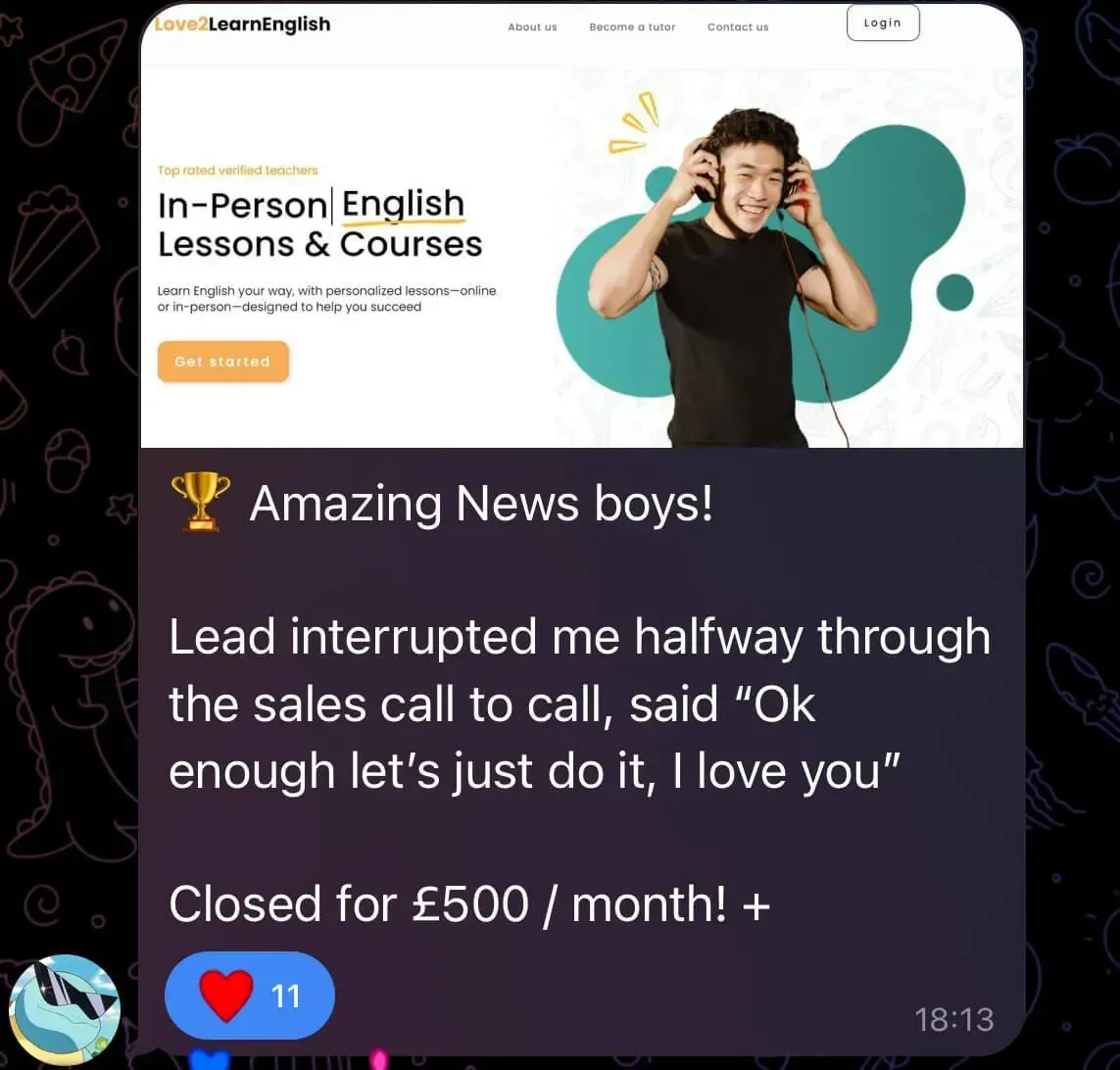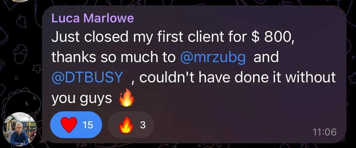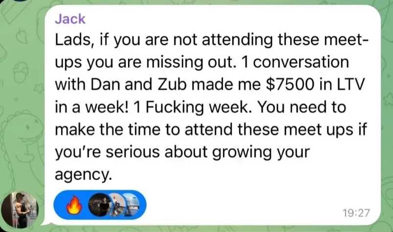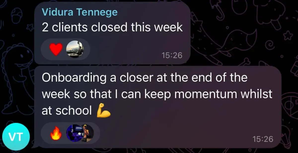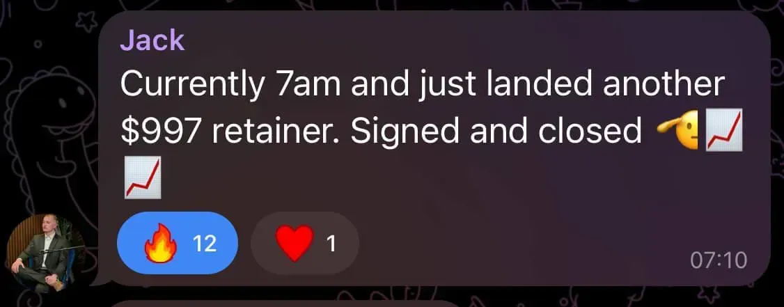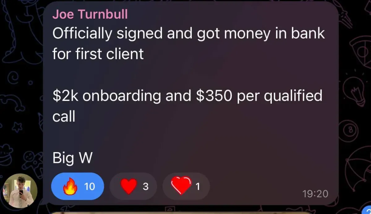 Was at uni, tried multiple online business models, struggled for months, and only signed his first client when financial pressure forced him to focus (overdraft/credit card situation). He joined a networking group, met people connected to Dan, and eventually partnered with him - bringing more systems/automation thinking to balance Dan’s pure sales intensity. Both together have generated over 7-figures with their agency